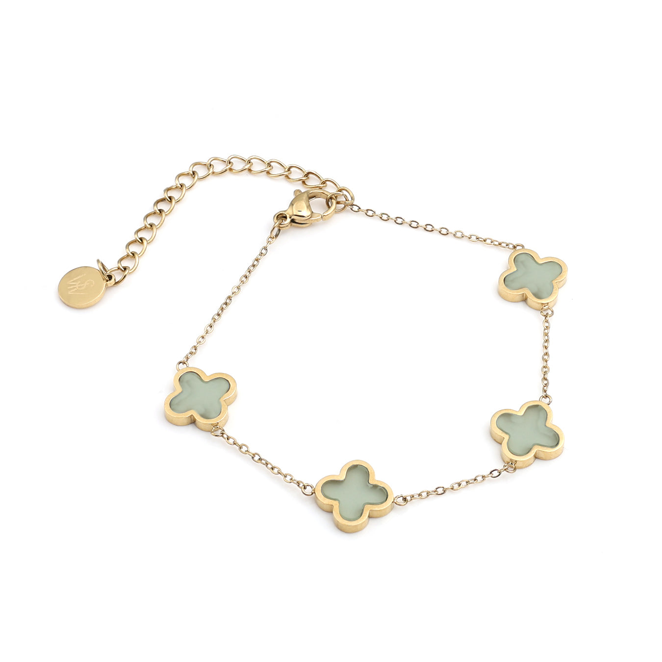 Crystal Clover Bracelet Jade Stone - Yellow gold