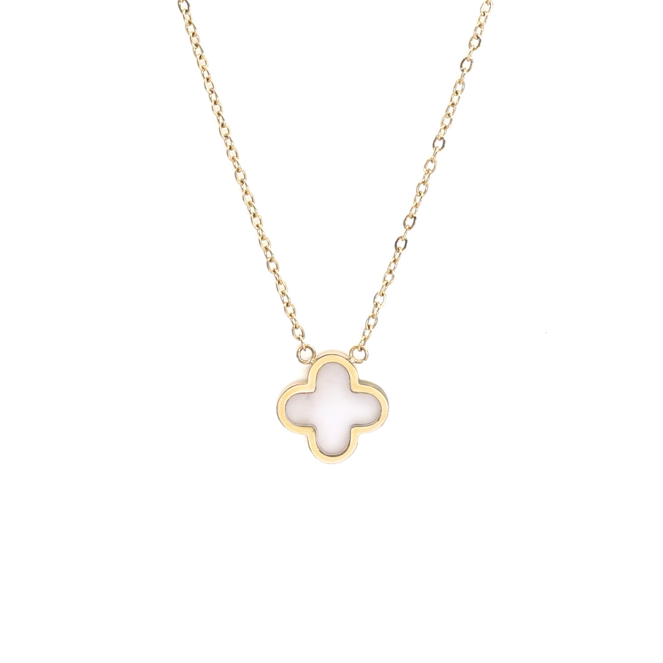 Bring a touch of luck and love to your jewellery collection with our Rose Quartz Crystal Clover Necklace in Yellow Gold. Designed to inspire elegance and positive energy, this charming piece features a four-leaf clover pendant - a symbol of good fortune - expertly crafted from durable stainless steel and luxuriously plated in yellow gold.