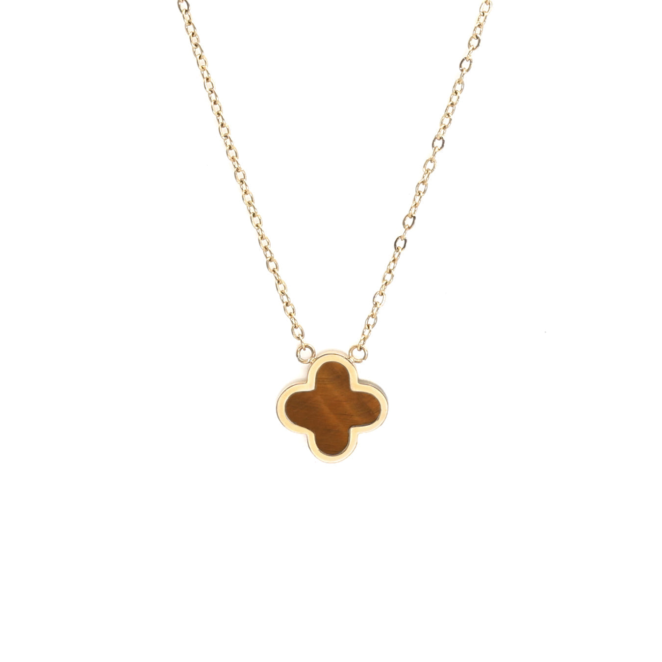 Crystal Clover Necklace Tiger Eye - Yellow Gold